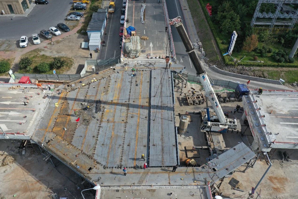 10月5日,芙蓉橋鋼箱梁順利合攏! 芙蓉橋位于長春市遼寧路、芙蓉路及青蔭路三路交匯處,為連接鐵路東西兩側交通的重要樞紐,改善局部交通壓力而建設此橋。全橋總用鋼量為530噸,鋼箱梁共分16節段,最重節段69噸。為保證施工節點盡快恢復暢通,威正恒建設集團長春分公司不惜代價的組織人力物力,歷時28天完成全橋的制作與安裝!于2020年10月5日順利完成鋼箱梁合攏,力保節點不失。為芙蓉橋順利通車奠定基礎。